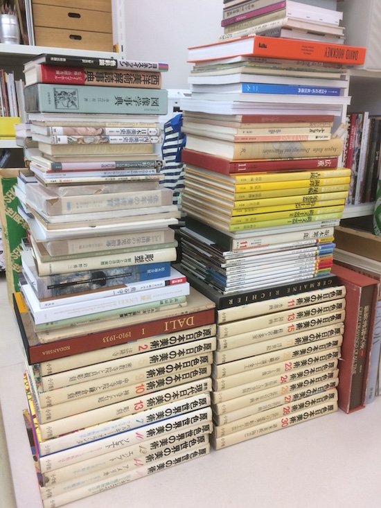 そしてもう一つ、僕が昔からお世話になっている方のご厚意により、先だって美術系の書籍をまとめてアトリエの蔵書として譲っていただきました。今、少しずつ開封しながら整えています。多少私物もありますが、こんな感じです。