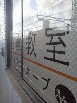 と言っても、印刷業者に出力してもらった広告を窓に貼付けただけですが、
