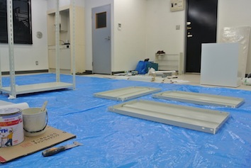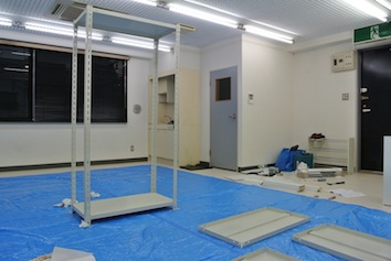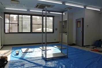 前回床張りをした事務所に今度は棚を導入しました。