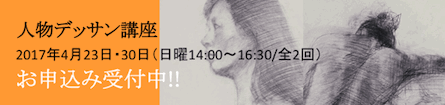 すでにWebサイトにもアップしましたが、今月4月23日・30日(日曜14:00〜)の全2回で「人物デッサン講座」を開講いたします。僕自身、作品制作の多くを人物画を通して学んで来たので、このアトリエを立ち上げた当初から「いつか人物画クラスをやりたい!」と思い続けていました。今回は2週の短期講座ですが、この講座で人物を描く面白さを体験していただけると何よりです。皆さまのご参加をお待ちしております!