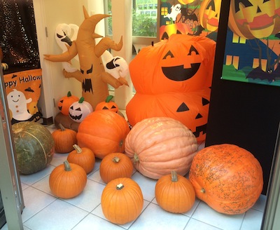 表だけではなく、中にも「これでもか」というくらいにカボチャが飾られています。