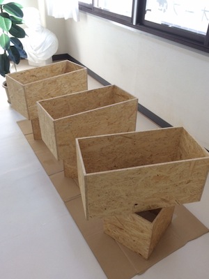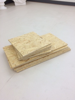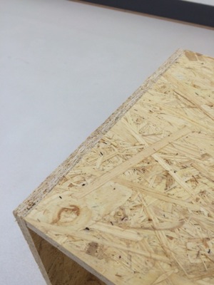 この台に使っているOSBという合板は、木片をプレスした構造用パネルで下地材に