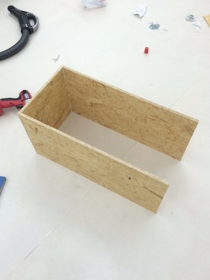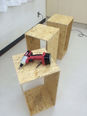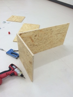 まず板を組んでいきます。ボンドとタッカーで仮止めをしたあとネジで留めます。